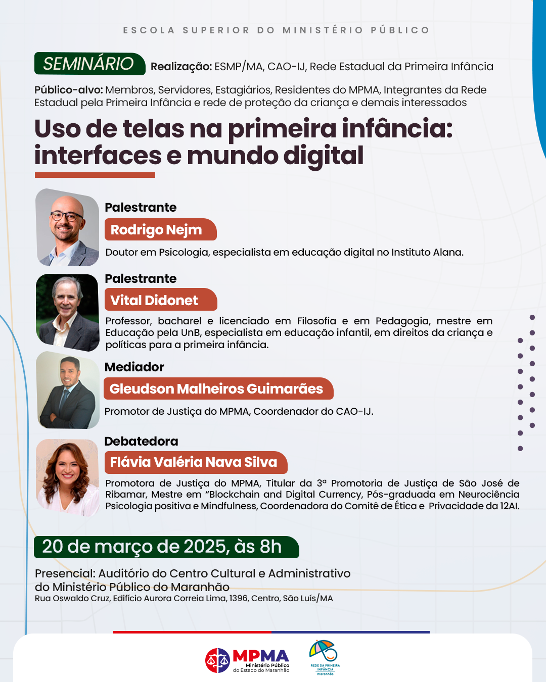 Público-alvo: Membros, assessores, aervidores, estagiários e residentes do MPMA e público externo